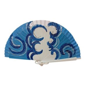 • Abanico Azul y Blanco con Diseño Abstracto en Tonos Azules – Estilo Moderno y Artesanal