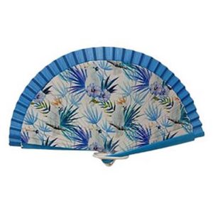 • Abanico Tropical Azul con Diseño Floral – Elegancia y Frescura Natural