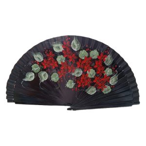 • Abanico Negro con Flores Rojas y Verdes – Diseño Artesanal y Elegante