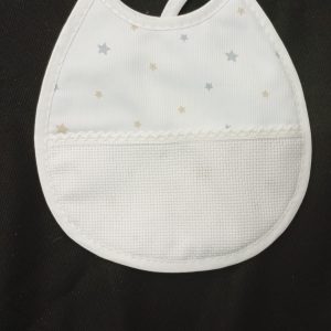 • Babero Blanco para Bebé con Estrellas Beige y Gris – Suave, Absorbente y Unisex
